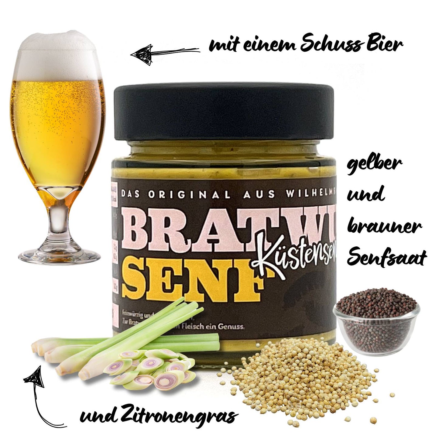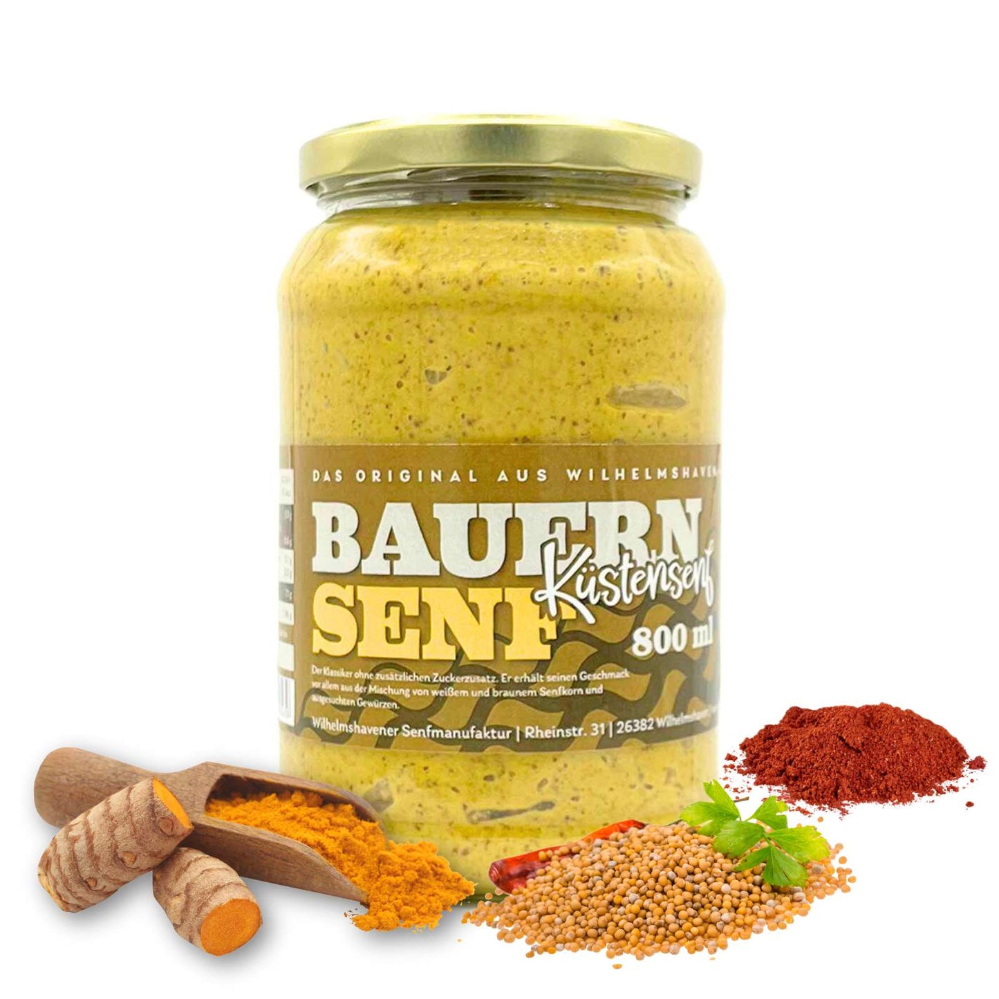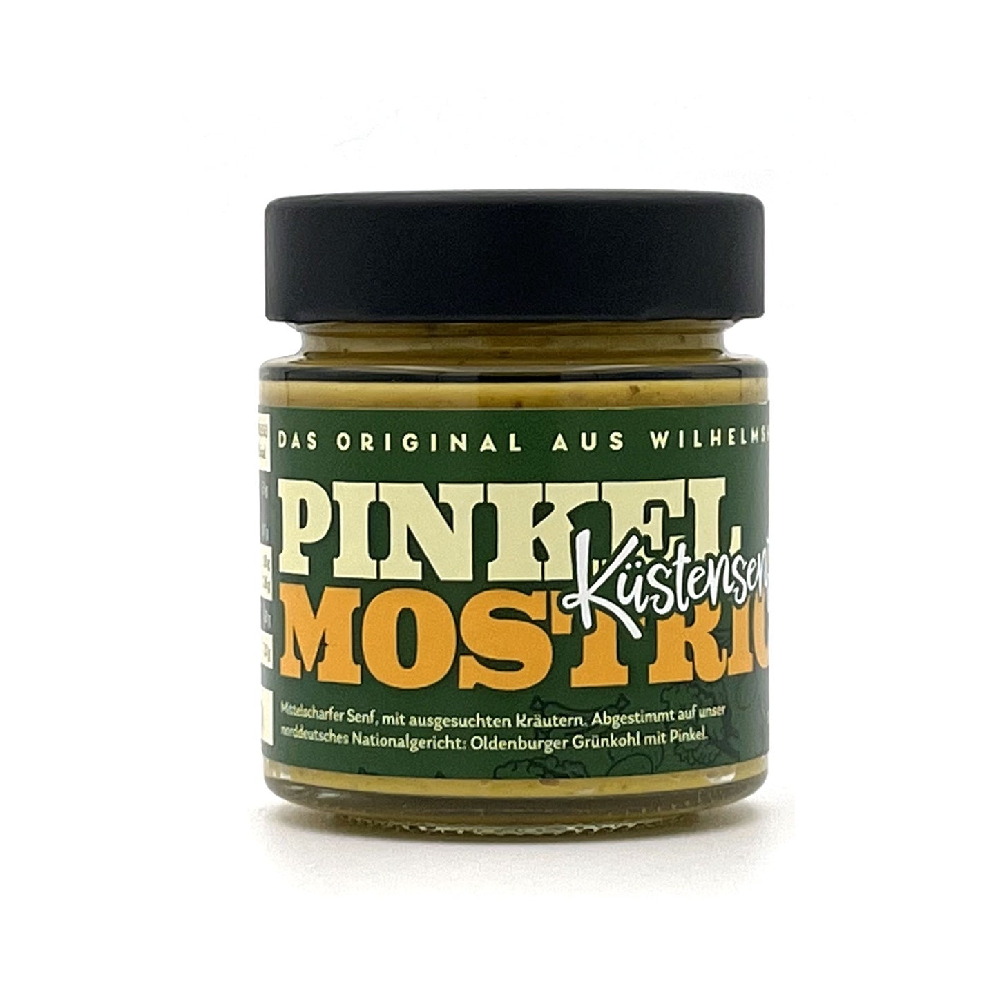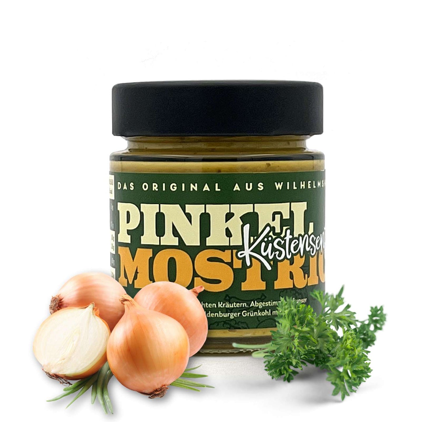Entdecke unseren Pinkelmostrich, den handgemachten Küstensenf mit Zwiebeln und Petersilie. Perfekt als Beilage zum Oldenburger Grünkohlessen.