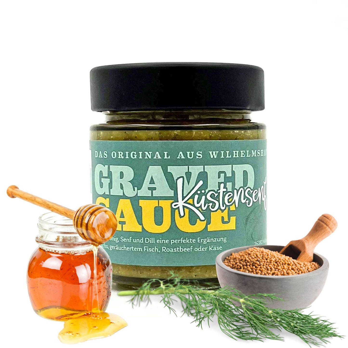 Entdecke unsere handgemachte Graved-Soße mit Honig vom Imker, Dillspitzen und ganzen Körnern – perfekt für Feinschmecker