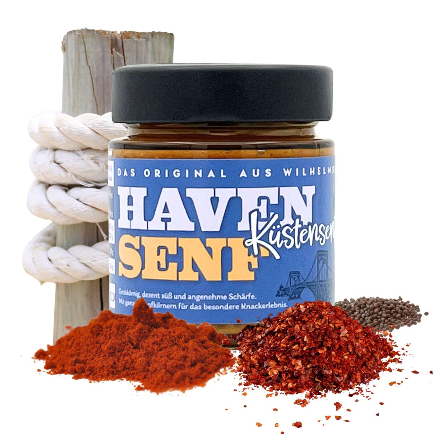 Entdecke den süßlich-rauchigen Havensenf mit Aceto Balsamico und eingelegter Chili. Perfekt für Fleisch, Käse, Dressings und mehr.