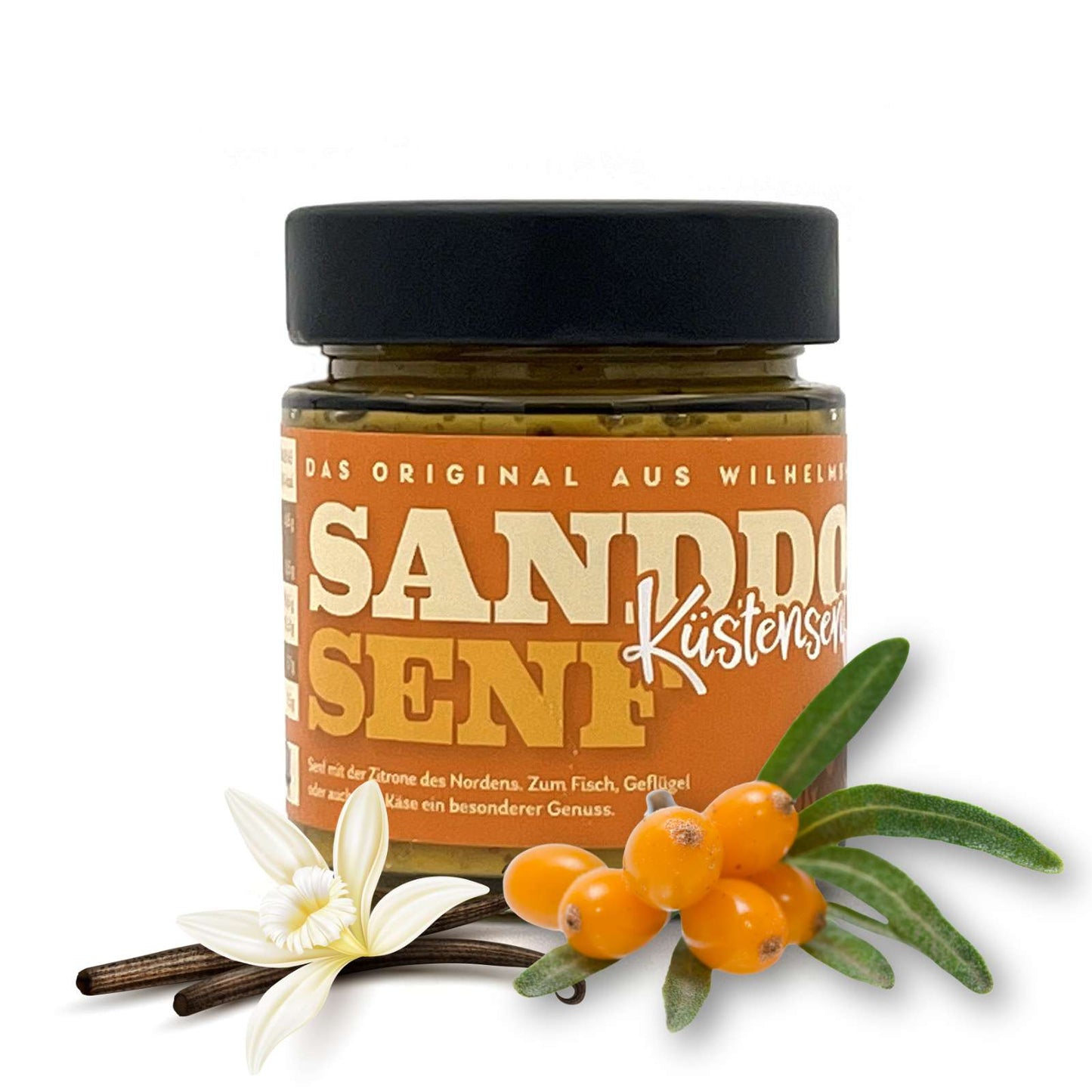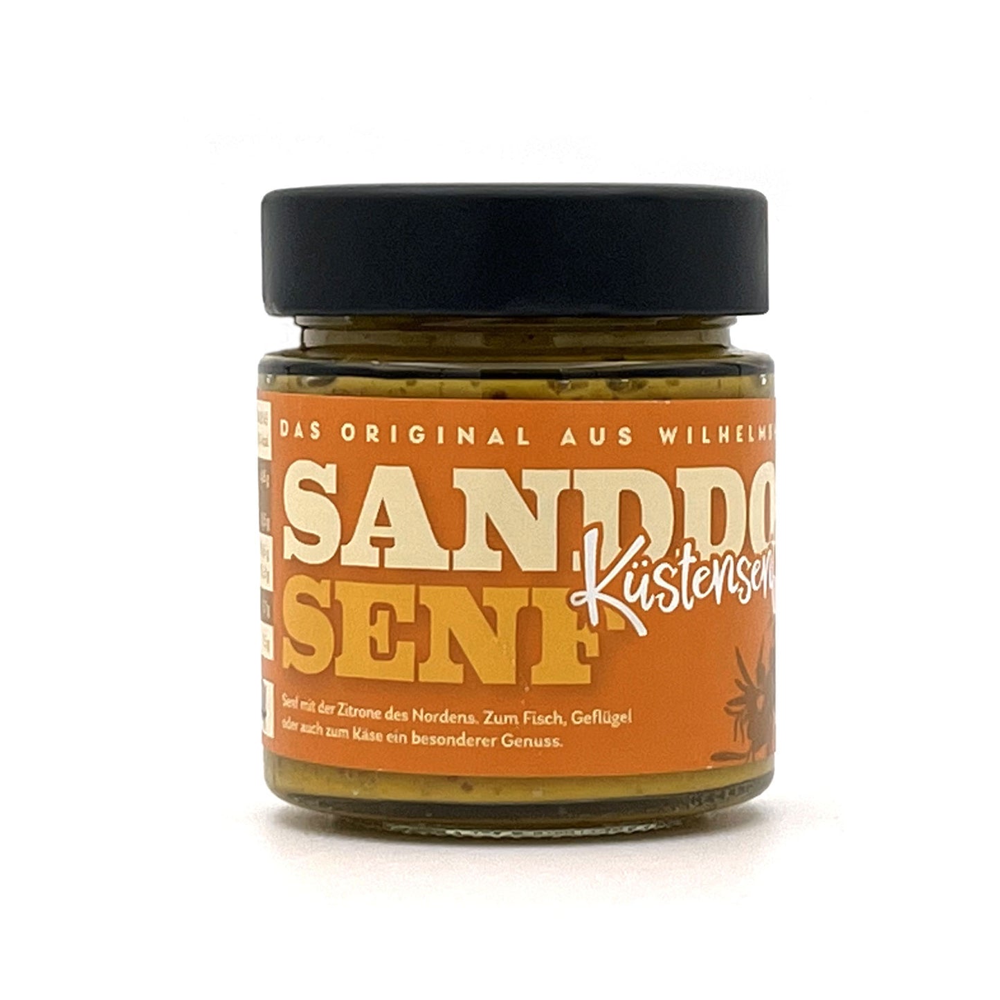Entdecke handgemachten Sanddornsenf, fruchtig-mittelscharf, perfekt für Fleisch und Gemüse. Ein Muss für Feinschmecker!