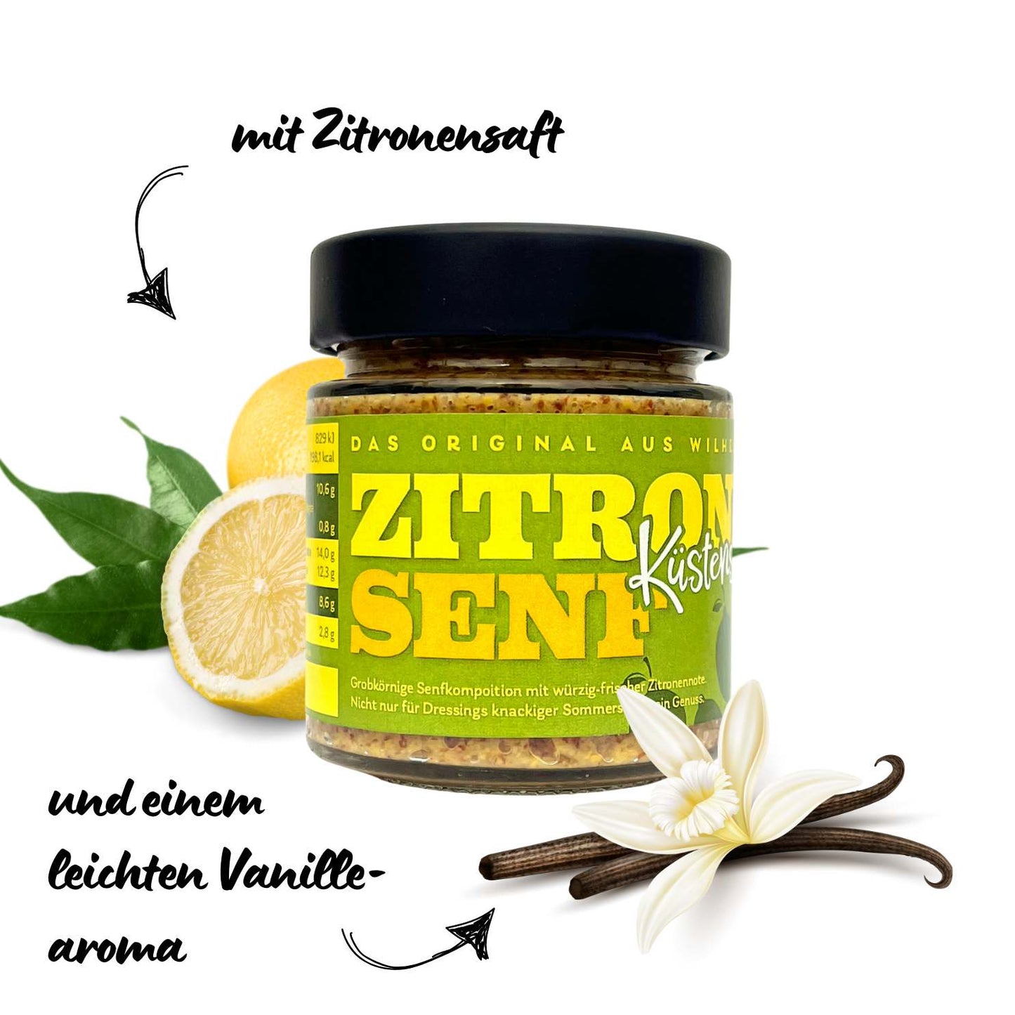 Genieße den handgemachten Zitronensenf mit feinfruchtigem Geschmack. Perfekt für Fleisch, Gemüse oder als besondere Geschenkidee.